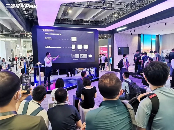 针对室内场景智能应用,现场工作人员介绍到,三雄极光早几年已实现了从最初单项灯具的控制,到场景化的智慧照明方案,再到全屋空间智慧照明解决方案的升级进化,实现在不同场景下,灯光与其他智能软件、硬件的联动,可通过手机APP、墙壁开关、语音、声控等多种方式,控制智能照明系统、智能影音娱乐、智能健康环境以及智能安全管理,经过多年专注摸索与技术层面突破,如今给予人们的生活和工作场景会带来更智能、更精确、更人性化的体验。