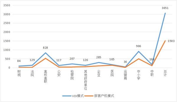 2020年整体市场仍然以VDI模式为主,胖客户机模式仅占1/3。