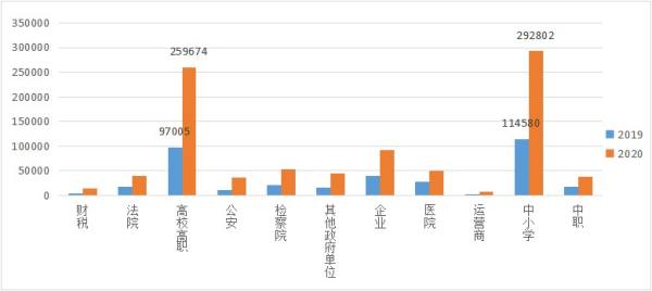 2020年教育行业迎来转型关键期,云桌面部署方案被广泛采用,高校高职和中小学市场增长明显,增长率分别为167%和155%。