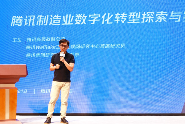 发布仪式之后,腾讯高级战略总监王岳带来《腾讯制造业数字化转型探索与实践》的主题演讲。他首先为大家分享了目前数字化转型的大背景,提到下一个十年的红利来自于内循环、消费分级与数字化。数字化正经历着从转型到创新的转换过程,腾讯自身也是处在转型过程中的企业,组织、战略升级的背后是希望用科技的力量持续为用户创造长期价值。数字化转型是一个长期的系统工程,腾讯主要从连接、数据、决策三个层面为企业提供支持。同时他提到:复杂系统只是数字化转型的结果而不是目的,创新业务的架构不是设计出来,而是演进出来的。以“朴素价值”点做为切入口,快速迭代,进而撬动企业的整体数字化转型。