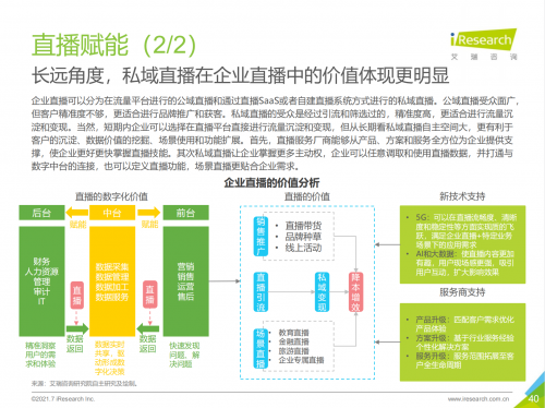 如今,在流量平台进行的公域直播已经得到验证。报告指出,在当下企业私域沉淀、精准营销、降本增效需求增加的背景下,企业直播的数字化价值被进一步挖掘。企业私域直播由于更有利于客户的沉淀、数据价值的挖掘、场景使用和功能扩展等优势,从长远角度来看价值体现更明显。