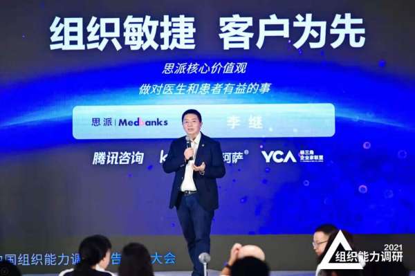 作为互联网、实体经济的获奖企业代表,思派健康科技联席CEO李继、盐津铺子副总经理李汉明分别带来了主题演讲,与大家分享他们各自的组织能力建设实践经验。在思派健康的几次重大转型过程中,敏捷与客户导向都是最重要的标尺,遵循着这两点公司敏锐捕捉医疗行业的潜在机会,形成了“战略敏捷—战术敏捷—组织敏捷—行动敏捷—反馈敏捷—及时修正”的管理实践闭环。