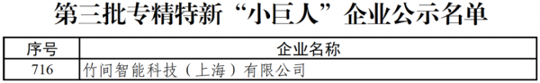 近期,工业和信息化部发布了第三批建议支持的国家级专精特新“小巨人”企业公示名单,竹间智能榜上有名,荣幸地被授予专精特新“小巨人”企业称号。这份来自国家、面向全国各行业的有力认可,是竹间智能在AI NLP征途上所取得的重要阶段性成果。