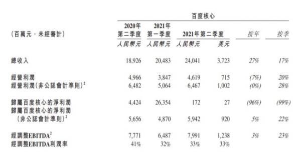 2021年第二季度净亏损人民币6亿元,包括长期投资公允价值亏损人民币31亿元,而上一季度则录得公允价值收益人民币237亿元,两者主要是与对快手科技长期投资按市值计量的调整有关。归属百度的净利润(非美国通用会计准则)54亿元,超市场预期。