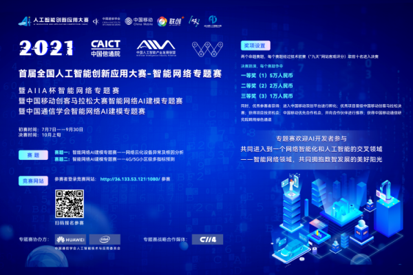 本次大赛包含开源框架工程化应用落地、飞桨开源框架前沿模型复现、AI城市之交通、AI机器人、智能计算、智能网络、智能通信设备、工业智能 8 大赛道,大赛从8月持续到11月。其中,由中国移动通信研究院承办的中国移动创客马拉松大赛智能网络AI建模专题赛办赛宗旨和实力与大赛十分契合,因此被成功纳为首届全国人工智能创新应用大赛智能网络专题赛。目前初赛进行得如火如荼。