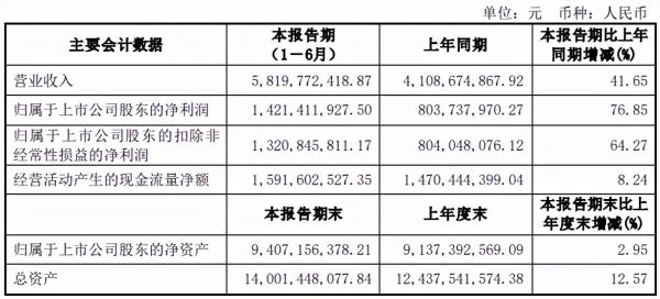 据公牛集团2021上半年业绩报告,其营业收入为58.20亿元,较上年同期增长41.65%;归属上市公司股东的净利润为14.21亿元,同比增长76.85%。