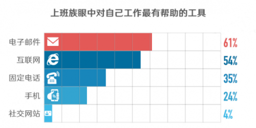 先给大家看一个基本的调查情况,“上班族眼中对自己工作最有帮助的工具”