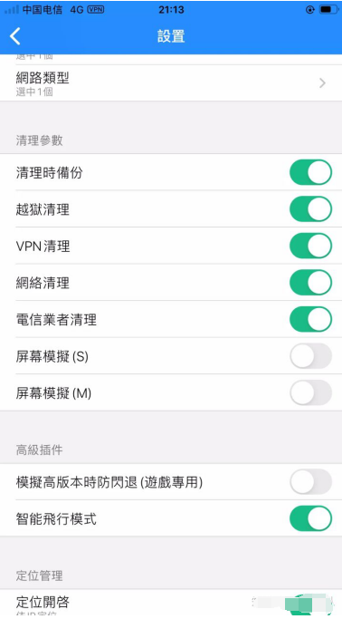 系统版本全选,运营商选电信,网络类型选4G,参数清理&高级插件,下面几个选项全都选上: