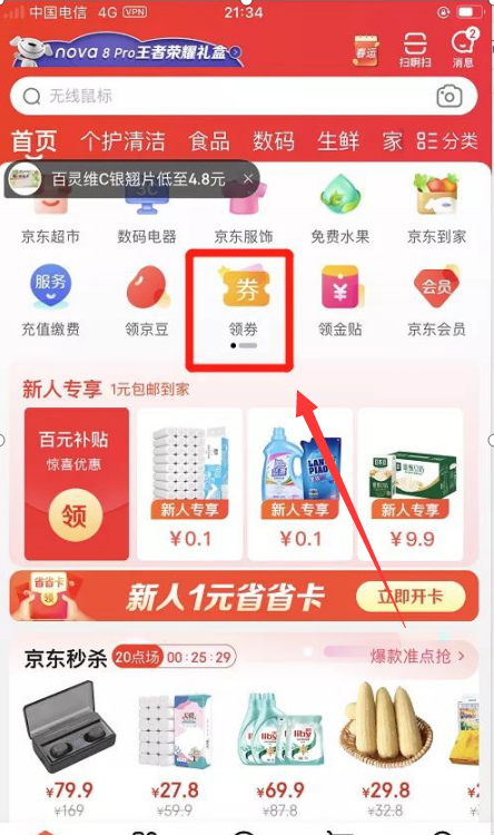 京东为了增加平台流量和销售数据,鼓励大家拉取新用户,凡是新用户都会给予一定的福利,所以新人可以进行低价购物。比如:原价29.9元5斤东北大米,领券下单只要0.01元,原价9.9元的维达抽纸8包只要0.9元等等。