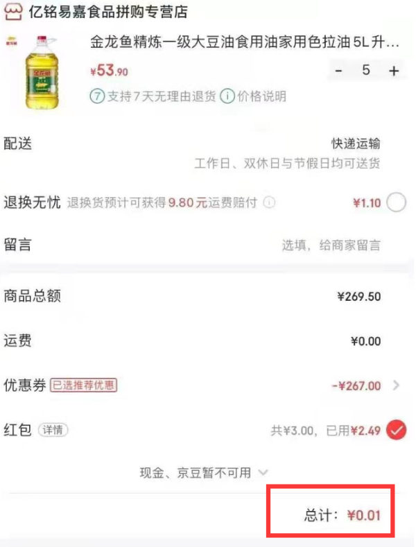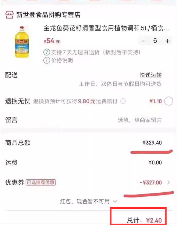尽管平台上很多产品可以买,但我们最好选择日用品,比如大米、洗衣液、抽纸、垃圾袋等这些物品,一是可以自用,二是谁家都用得着,比较好出手。