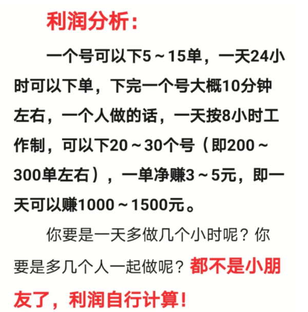 最后我想说,这个项目只要你有稳定优质号源,过硬的撸货技术以及稳定出货渠道,你就能赚到钱。三者缺一不可,否则你就另寻其他发财路子,这条路不适合你,冒然前往只能沦为韭菜和炮灰。