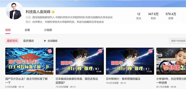 事实上,博士做视频并不是今天才开始。在西瓜视频上拥有300多万粉丝的“科技袁人”袁岚峰,是不折不扣的中科大博士,并且他当年拿到中科大录取通知书的时候才14岁,拿到化学博士学位时才23岁。曾有人质疑,他这样的天才,最后去做科普这种“简单的工作”是不是一种浪费?袁岚峰笑了,科普可不是一种简单的工作,并且具有不亚于做科学研究的深远意义。他认为,在面向专家的技术性文章和面向群众的过于粗浅而往往不准确的文章之间,我们的科普工作存在一个巨大的空当,即面向那些值得科普的读者,准确而生动地介绍科学原理和科学的思维方式。