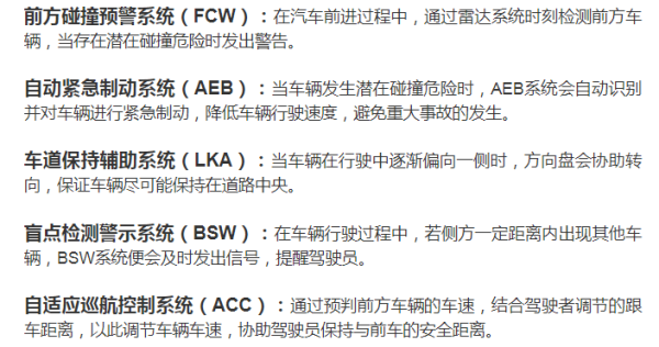 今年初,美国权威杂志《美国消费者报告》公布了目前主流的主动安全系统,主要包括FCW、AEB、LKA、BSW、ACC、ADAS等。