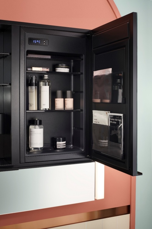除此之外,科勒博纳2.0系列镜柜的可调节层板设计,更可按消费者喜好将放置物大小、形状取用顺序、取用频率进行自由调整,多样化的收纳空间,令每一件梳化产品皆可适得其所,优化消费者的日常梳妆流畅感,除可容纳不同规格的护肤及美妆产品外,更贴心配备可吸附指甲钳、修眉刀等小型金属物件的磁吸置物架;同时柜内加设安心双插座方便电动牙刷、卷发棒、插电式美容仪器等设备的日常取用。科勒博纳2.0系列镜柜还有内置 “美妆冰箱”的版本可供选择,无论夏日还是寒冬,10-25℃的不同温度按需调控,为你的娇贵护肤品提供温度适宜的 “鲜” 存区。