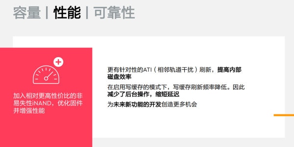 性能方面,通过优化固件缩短时延,主要在减少相邻磁道干扰(ATI)刷新次数,并减少写缓存启用模式下对写缓存刷写的需求。得益于上述优势,基于OptiNAND技术的硬盘性能将会大大提高。