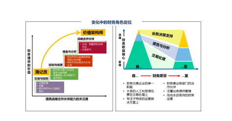 财务的价值是从交易与控制、控制与核算、报告与分析最后到战略合作伙伴的进阶,伴随着职能演变,即从交易处理、报告与分析到最顶端的业务决策支持。总结来看,财务人员的价值放大,顶端位于数据分析和对业务的决策支持上。