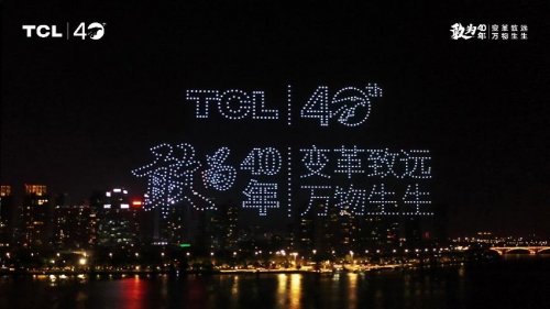 敢为40年,变革致远,万物生生,TCL在夜空中通过光影文字,致敬时代的同时,也表达对每一位TCL用户的感谢之情。是不断变革、不断求新的基因,让TCL40年来生生不息,打破路径依赖和平庸陷阱,穿越周期,实现突围与跃升;是站在改革开放前沿阵地的惠州,为TCL营造了良好的发展环境;是我们这个充满了激情与热血的伟大时代,造就了TCL今天的成绩。而每一位用户、合作伙伴四十年来的相伴相守、鼎力支持,更是TCL奋勇向前的坚实后盾与不竭动力。