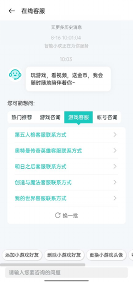 针对庞大的用户群体,广东欢太科技积极完善用户反馈渠道,在运营的欢太小游戏、主题商店等应用中内置了欢太客服在线联系通道,用户通过APP便可开始在线咨询。鉴于用户数量不断攀升,用户反馈需求量不断增加,广东欢太科技于微信端推出欢太客服微信公众号,并上线在线服务通道,进一步提升用户反馈便捷度。