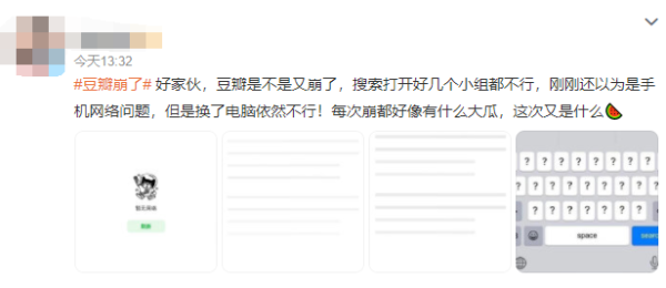A5创业网(公众号:iadmin5)10月26日报道:今天中午,有网友在社交媒体表示自己的豆瓣无法打开。目前“豆瓣崩了”登上微博热搜。