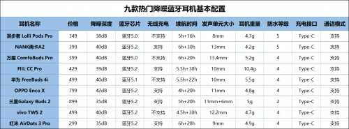 ①九款蓝牙耳机基本配置