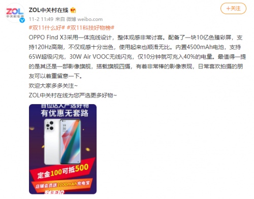 根据OPPO战报数据显示,在11月1日开门红当天,OPPO的手机销量额已经超过了去年全周期(11.1-11.11),同时产品销售再创新高,比如Reno系列销量&销售额较去年同期增长3倍、K系列增长6倍,以及Find系列销量&销售额比起去年也增长10倍,从这份战报中不难看出OPPO手机在购物节期间受欢迎程度。其中OPPO Finad X3系列在销量口碑上再创新高度,更是成为不少消费者的首选。那么它是否值得消费者入手呢?