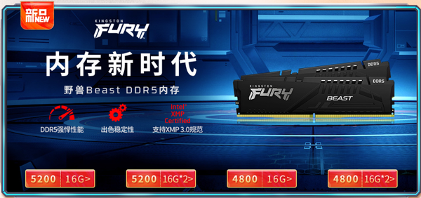 Kingston FURY野兽(Beast)DDR5内存绝对是11.11期间最受关注的新品,起始频率高达4800MHz,作为新世代DDR5内存,突破性的速度提升让玩家游戏特效全开的体验更佳,加速3D渲染及大型动画制作,4K+格式在线直播更流畅,可以满足对电脑性能有较高要求的用户。