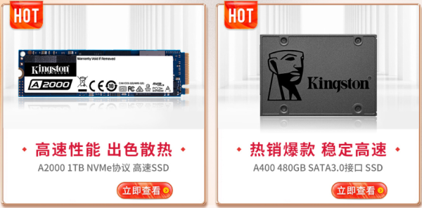 新装机用户若要选择固态硬盘、,必选金士顿A2000 SSD固态硬盘,因为其可以用实惠的价格获得NVMe PCIe高速性能,以及读写2200MB/s和2000MB/s的极致性能。如果是老机升级,那就要选金士顿A400 SSD固态硬盘,虽然同是SATA接口,但是金士顿的A400 SSD固态硬盘性能要比机械硬盘快数倍以上,10秒开机将成为现实,旧机焕发新生只需一块金士顿A400 SSD固态硬盘。