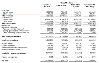 不过,得益于碳积分收入的大幅增长,蔚来的总营收还是超过了分析师预期。蔚来第三季度包括碳积分在内的其他收入为11.68亿元人民币,同比大增350%,环比大增117%。