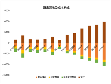 营收与之前的预期相差无几,毕竟蔚来的汽车销售占据了总营收的90%左右,因此通常在蔚来公布交付数据之后,大家就已经对蔚来的营收数据有了大致的预期,因此营收数据也不算出人意料。