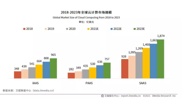 根据艾媒咨询数据显示,2020年全球云计算(IaaS+PaaS+SaaS)市场规模达到2245亿美元,较2019年增长19.22%,2021年有望达到2654亿美元。由此看来,虽然受到疫情的影响,全球的云计算依然保持着较高的增长速度。