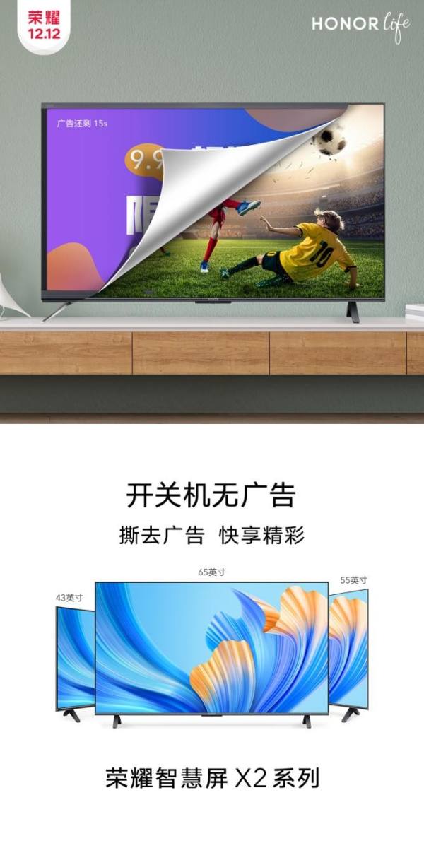 又是一年双十二!就在今天,双十二电商活动正式拉开大幕,秒开机无广告、10.7亿色全彩屏、多屏协同功能强大的荣耀智慧屏X2系列在京东商城、天猫官方旗舰店、荣耀商城等平台正式开启超值活动,原价3499元的65英寸限时2699元,2699元的55英寸限时1999元,1799元的43英寸限时只需1499元,仅限今日,荣耀智慧屏X2在购物车等你!