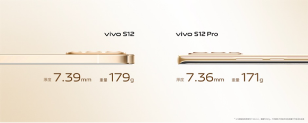 “轻薄”是vivo S系列的家族基因。vivo S12 Pro进一步将TW盖板厚度减薄约19%,FPC厚度减薄约29%,前摄与盖板间隙减薄约30%,电池容量升级为4300mAh。整机仅重171克,薄至7.36mm。vivo S12同样轻薄出色,机身采用了一体式航空铝直边中框,7.39mm超薄机身手感更顺滑;179g的轻巧机身,精致简洁、简约均衡。