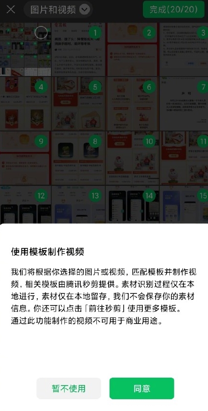 据悉,素材识别仅在本地进行,素材仅在本地留存,且通过此功能制作的视频不可用于商业用途。