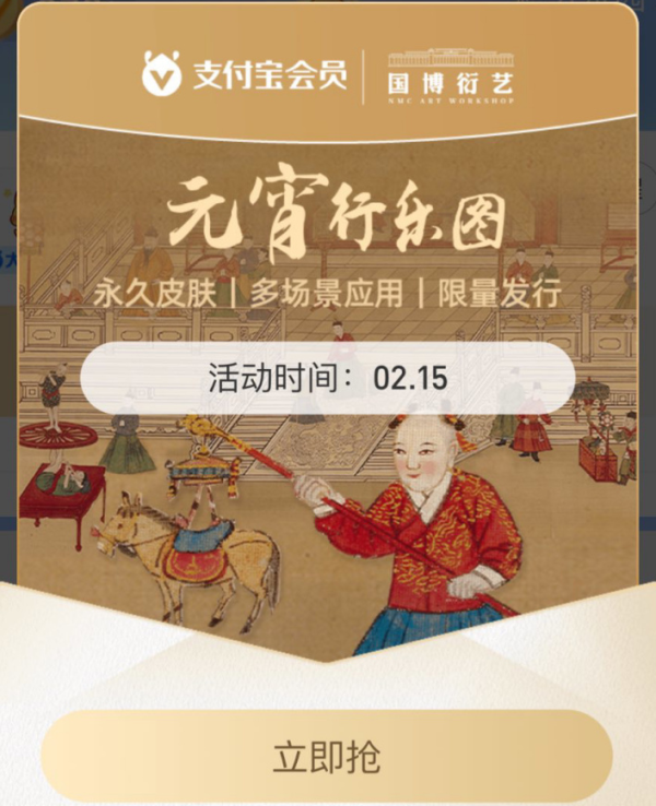 元宵行乐图皮肤特定包括:永久皮肤、多场景应用、限量发行。2 月 15 日多个时段可以抢购。
