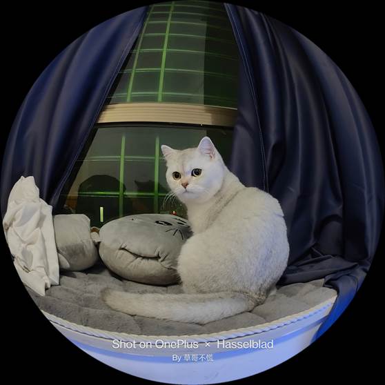 值得一提的是,除了成像色彩表现具有独特的韵味之外,这次一加 10 Pro还带来了一枚支持150°超大广角镜头,这也是迄今智能手机上拥有的最广超广角视野,借此用户可以开启鱼眼模式,解锁更多的拍摄玩法。像是以下网友拍摄的这张照片,画面中的猫咪在镜头下如同身处“鸟笼”当中,看上去十分有趣。