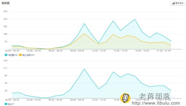 我们可以较为直观的看到网站访客趋势图,可以看到网站的访客高峰和低谷时间段,然后每天和每周进行对比。
