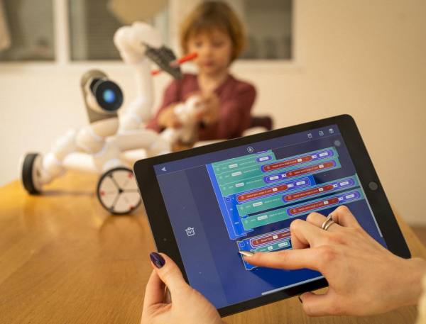 可立宝(ClicBot)的教育属性表现在可以为孩子们提供不同层次的编程体验。从基础拼接即可实现的动作编程,到通过拽拖图形来实现的无代码编程,再到进阶级的Python编程,可立宝(ClicBot)让孩子们从易到难、循序渐进成为一个编程小达人。