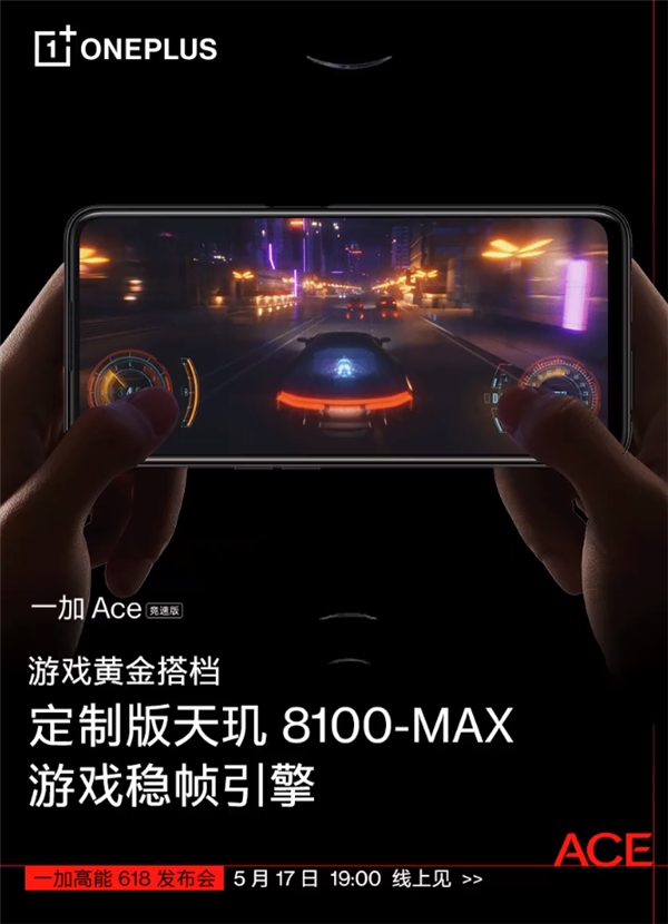 一加Ace竞速版将在5月17日19:00正式发布,大家可以通过一加官网、一加手机官方微博等渠道了解更多新品信息。