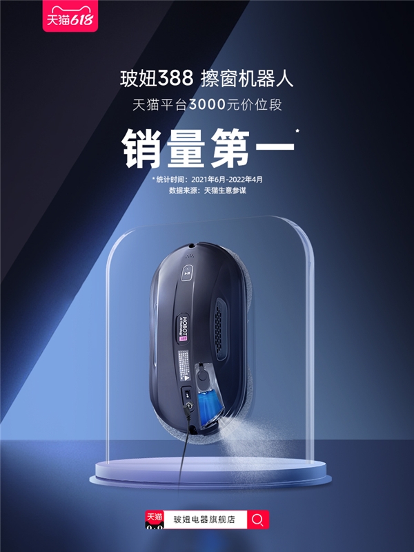 *销量第一:数据来源于天猫生意参谋2021年6月-2022年4月期间天猫平台擦窗机器人类目3000元价位段产品销量。