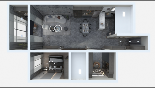 直线线条将床头背景墙进行切割,打乱空间秩序,重组生活情趣。奶油白,星空灰橡,超哑深灰,三种色彩在卧室空间中渐次展开,如跳动的思绪,自由的灵感,在空间中缓缓流淌。杯子融化牛奶,耳朵融化声音,玻璃融化阳光,床融化身体。蓝调、交响乐、摇滚、咏叹调、爵士、流行······随它什么音乐,播一首曲,捧一本书,拾取思绪的蚌,开出灵感的珠。