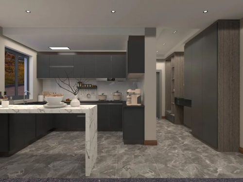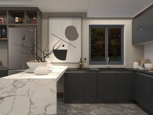 黑与白、深与浅、强与弱的色彩对比,以星空灰橡、超哑深灰为主基调,配合以白色大理石纹岩板岛台,加之光的运用,装饰出自然本真的居住空间,展现出居所独一无二的空间格调,在柴米油盐的烟火气息中,捕捉艺术的踪影。