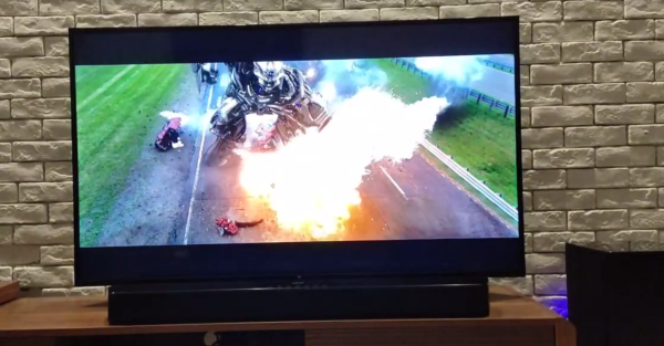 除了唱K之外,B5856用来追剧和看电影也毫不逊色,相比于传统KTV只能唱歌,笔者更喜欢这种在家里自由自在K歌唱累了之后还可以来一部自己喜欢的电影那种惬意感。B5856内置了音乐、影院、新闻和流行4种EQ模式,开启电影模式,拿《变形金刚》距离,这种大场面的电影,汽车追逐、金属碰撞的声音质感很强,对白也很清晰。尤其是一些漂移、刹车、碰撞,经过低音炮和条形音箱的演绎,声音迸发的能量感饱满,下潜有力。