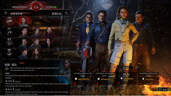 如果作为人类进行游戏,体验有些类似《僵尸世界大战》,属于第三人称动作射击的游玩模式。人类方有多名角色可以选择,分为领袖、战士、猎人和辅助4种职业。领袖可以给团队加Buff,战士有近战加成,猎人有远程加成,辅助可以给玩家恢复生命值和士气。
