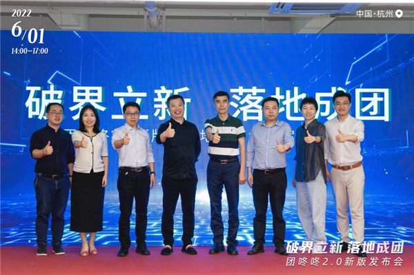 此刻,也来到了此次团咚咚2.0发布会的高光时刻,在杭州发改委员原副巡视员、长三角特色小镇产业联盟(杭州)秘书长徐东敏,浙江省华夏民生与公益研究院副院长邹宗平,团咚咚投资人李红星,团咚咚业务合伙人鲁泽良、团咚咚产品负责人郝丽、团咚咚商学院负责人百当、团咚咚商务负责人赵晓莲等人的共同见证下,正式完成团咚咚2.0新版发布会启幕仪式。