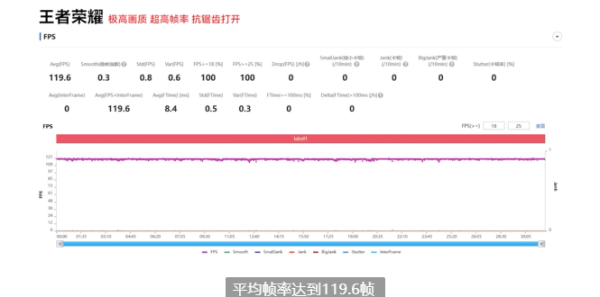 在高清画质、120帧模式的《王者荣耀》中,vivo X80平均帧率也是接近满帧,游戏体验可谓是丝滑流畅。