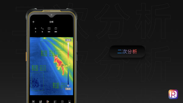 二次分析: 在拍下一张热成像的照片后,可以通过分析,看到被完整保留下来的温度信息。还可以框选热成像照片的任意位置,获取该区域的温度信息,还可以形成报告分享给朋友或同事。