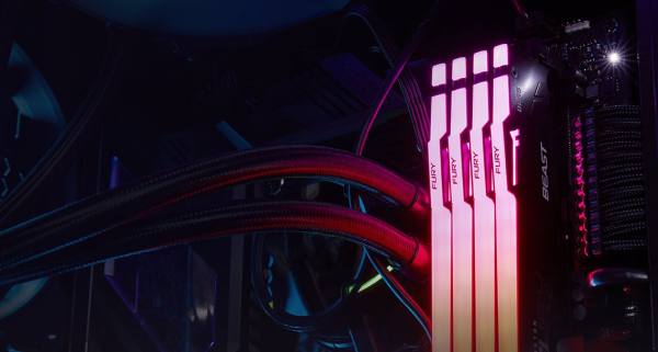 内存选择Kingston FURY野兽(Beast)DDR5 RGB 6000 16GBx2套条,因为这是目前市场上少有的能支持6000MT/s带RGB灯条的内存,并且套条的稳定性和兼容性更好,而价格几乎和两条单条价格一样,没有理由不选择套条。并且这款增强型的RGB光效可通过Kingston FURY CTRL软件或者主板RGB控制软件进行定制,达到统一协调的效果。