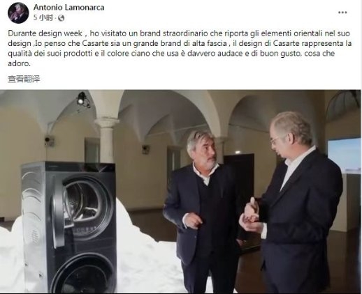 当地时间6月10日,意大利著名设计师Antonio Lamonarca在个人社交媒体分享自己在2022米兰设计周期间看到的,卡萨帝以锡兰青为主色调的东方美学艺术以及成套嵌入式高端智慧场景方案。同时,Antonio Lamonarca感叹:“卡萨帝是一个伟大的高端品牌,她采用的锡兰青色真的是大胆而有品味。”