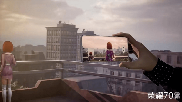 荣耀在这只MV中则扮演了一个连接现实的角色,做为荣耀70系列的代言人,龚俊成为现实和虚拟融合的第一位明星。而在MV中,龚俊手中的荣耀70手机则是另一个连接虚拟和现实的利器,比如度晓晓就是以荣耀智能助手的形象出现并处理很多用户需求的,而龚俊在给度晓晓拍摄的时候,也使用了荣耀70的独家功能主角模式。在主角模式下,拍摄的vlog视频可以多镜头拍摄,同时生成全景画面视频和主角的特写视频,实现一机双拍的效果,这也是在AI能力支持下实现的特色功能,在MV中算是一个小彩蛋了。