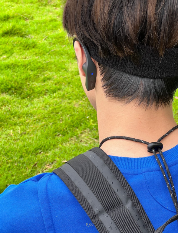 平时跑酷、玩滑板的时候最重要的就是状态,全身心的投入其中,享受飞驰、跳跃的自由。传统的项圈式骨传导(后耳挂式)反而不太适合笔者,因为经常需要上下跃动,传统骨传导会跟随上下移动,声音断断续续,而且沉浸运动的时候后面连接的部分显得很多余。反观A8606真无线分体的设计,就完全没有这个问题,挂在耳朵上很稳固,怎么摇头、跳转也没有丝毫松动,不拖泥带水,可以真正自由的投入到运动中去。